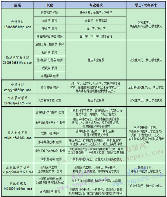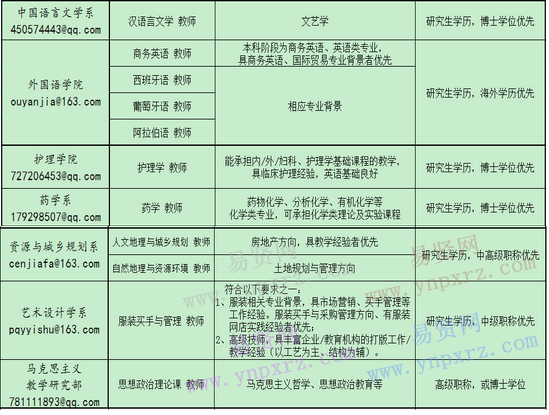 2.應(yīng)聘方式:請(qǐng)應(yīng)聘者將應(yīng)聘材料電郵至zsuxh@163.com,并同時(shí)發(fā)送至相應(yīng)院系郵箱(見上表),郵件主題注明“姓名+學(xué)歷+專業(yè)+應(yīng)聘職位”。有關(guān)應(yīng)聘材料本院予以保密,恕不退還。