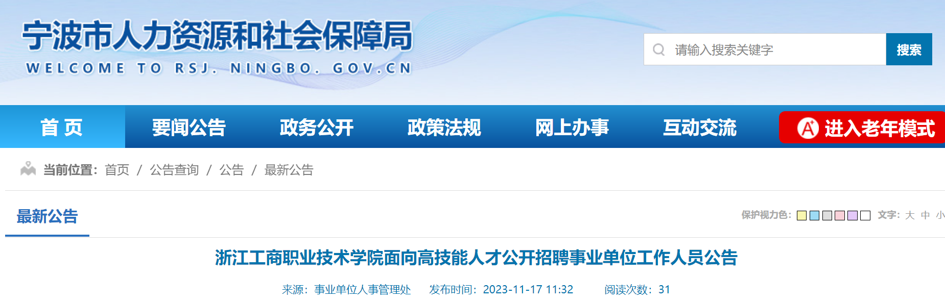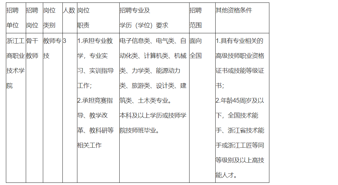 2023年浙江工商職業(yè)技術(shù)學院面向高技能人才公開招聘事業(yè)單位工作人員公告已發(fā)布,網(wǎng)上報名時間:2023年11月24日9:00至11月26日16:00?,F(xiàn)將招聘公告原文發(fā)布如下: