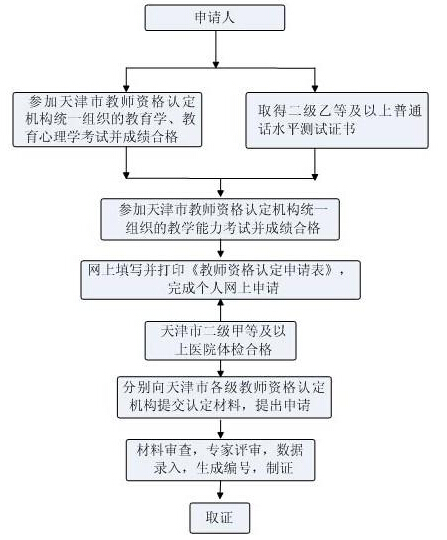 申請幼兒園、小學和初級中學教師資格實行屬地化管理,由申請人戶籍或工作單位、就讀學校所在地的區(qū)縣教育局教師資格認定機構(gòu)受理并認定;申請高級中學教師資格、中等職業(yè)學校教師資格、中等職業(yè)學校實習指導教師資格由天津市教育委員會教師資格認定機構(gòu)受理并認定。