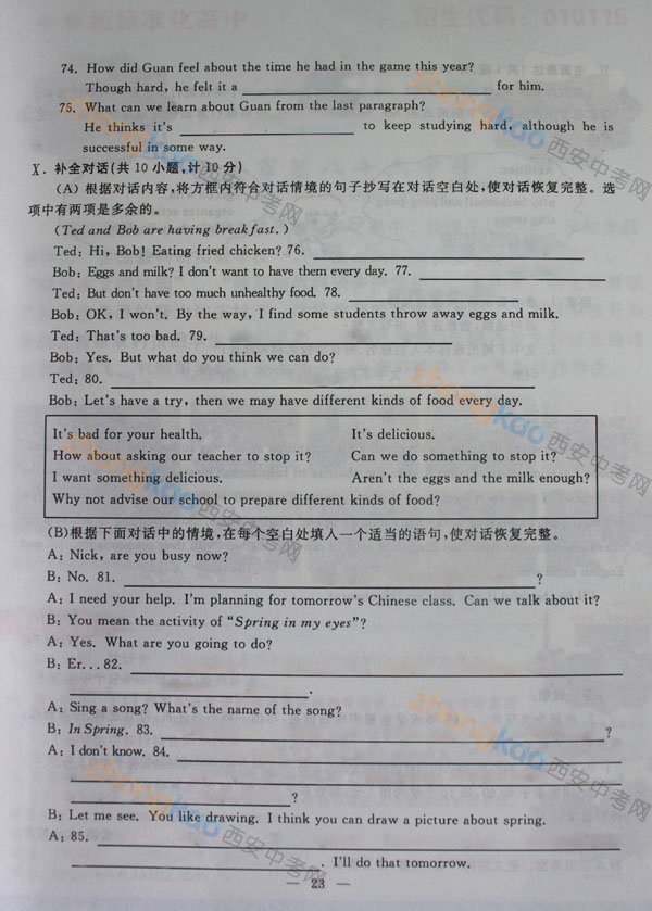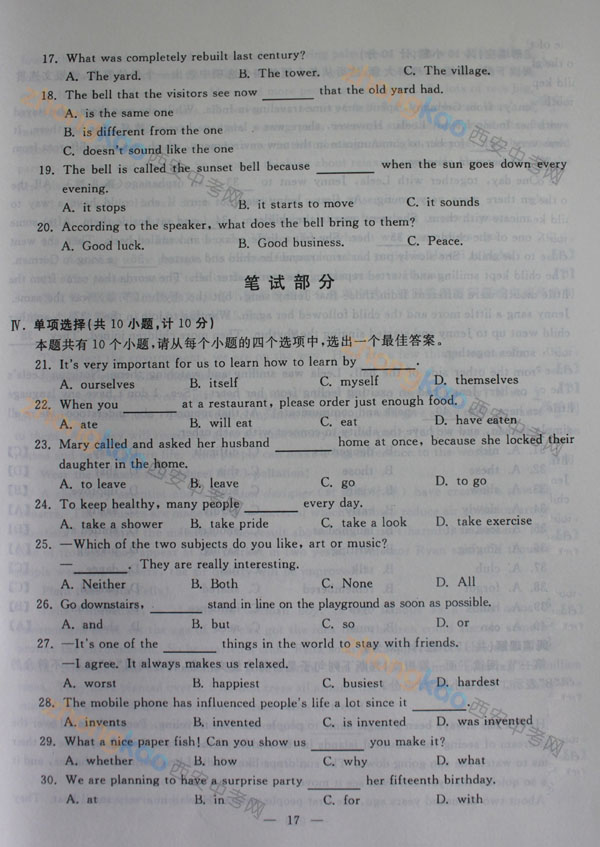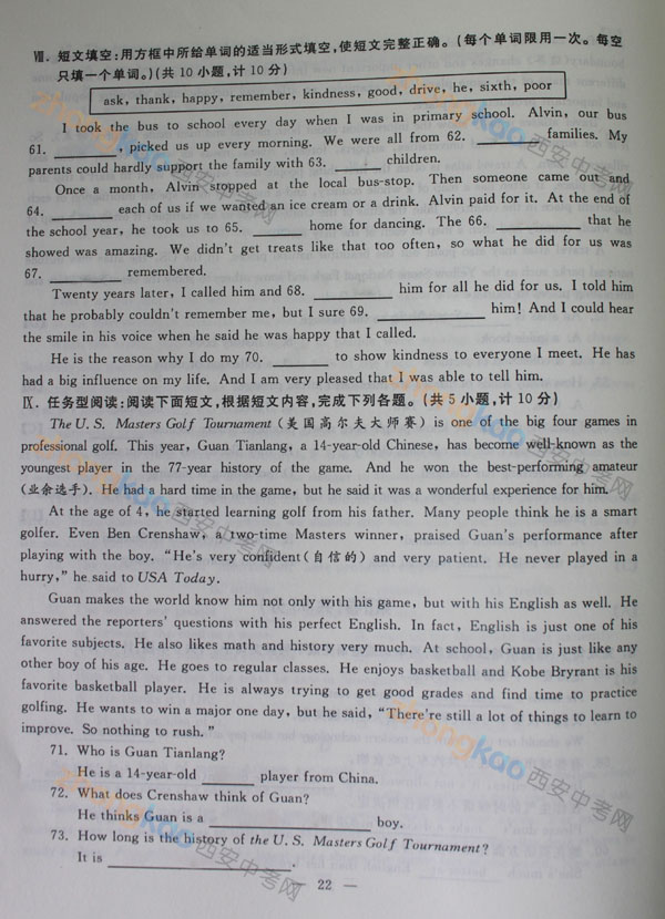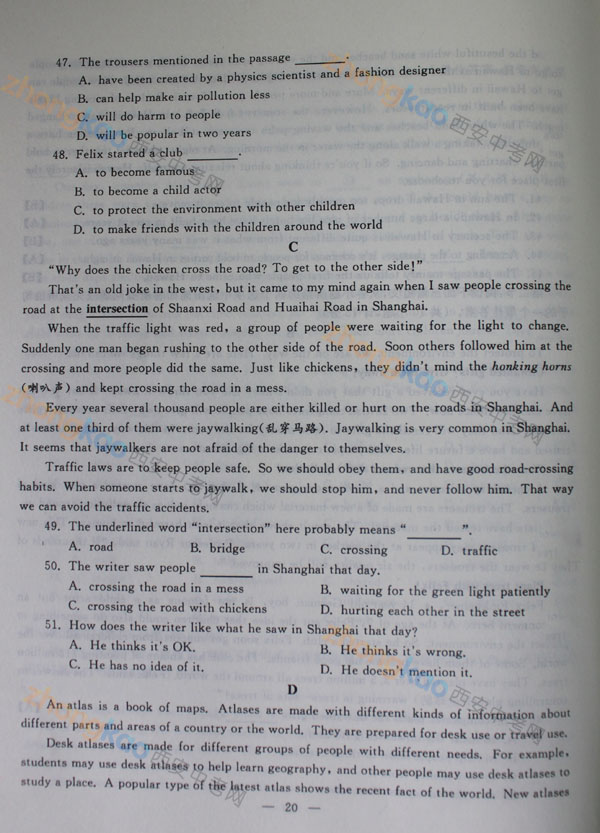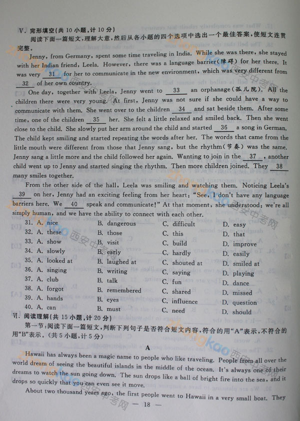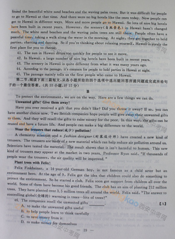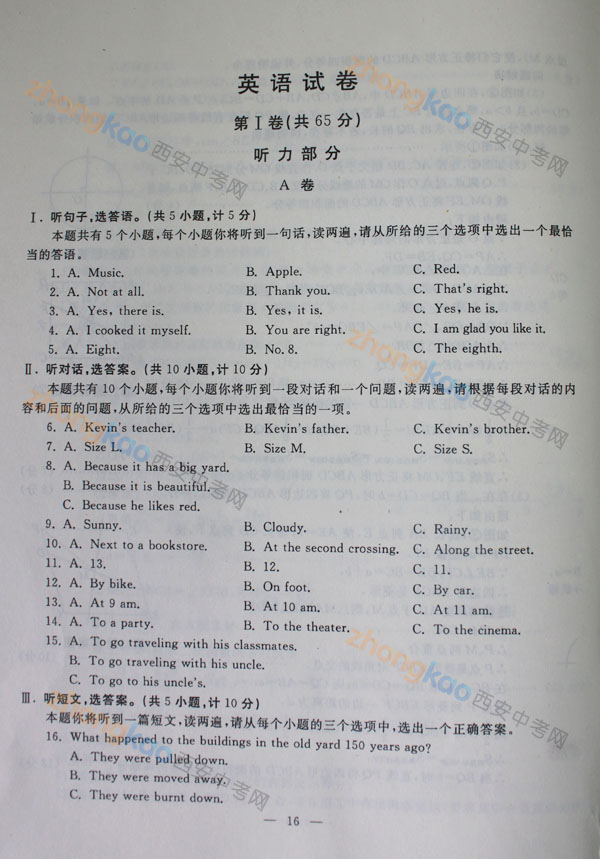 2013年陜西中考真題:英語試題