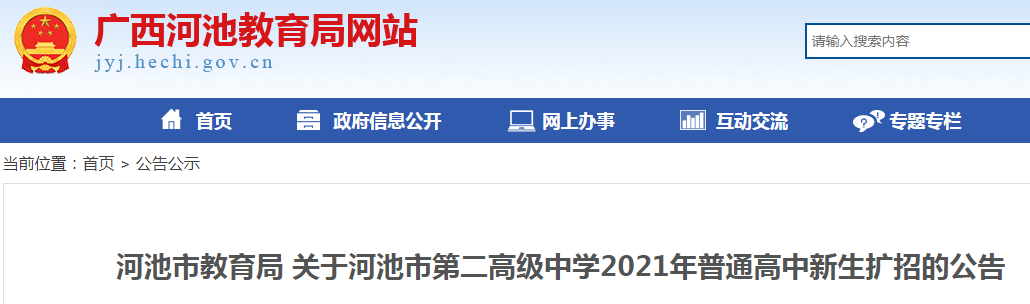 從河池市教育局了解到,2021年廣西河池第二高級中學普通高中新生擴招的公告已發(fā)布,為方便考生了解情況,現(xiàn)將有關事宜通知如下: