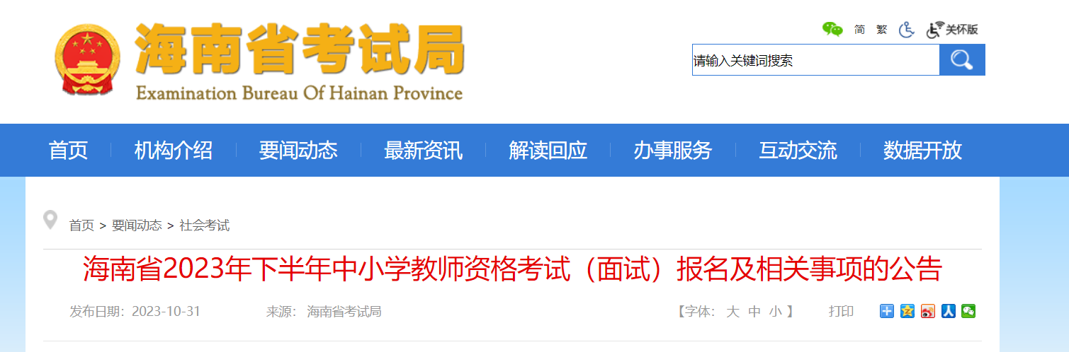 2023年下半年中小學(xué)教師資格考試(面試)將于12月9-10日進行,現(xiàn)就海南省報名有關(guān)事項公告如下: