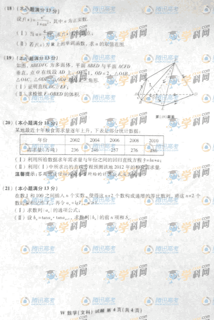 2011高考數(shù)學文科試題(安徽卷)