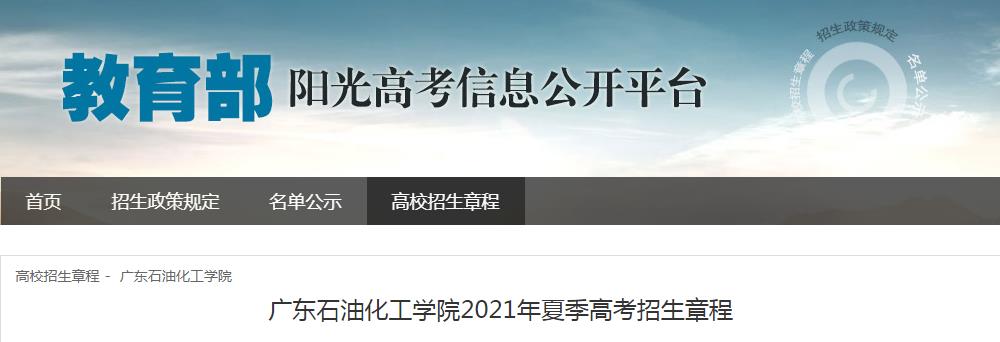 從教育部陽光高考信息公開平臺獲悉,廣東石油化工學(xué)院2021年夏季高考招生章程已公布,具體詳情如下: