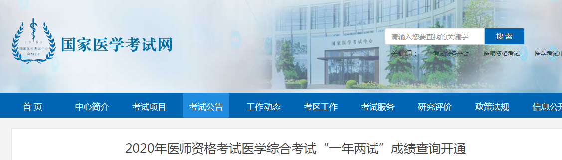 即日起,2020年廣東臨床助理醫(yī)師二試成績正式公布,國家醫(yī)學考試網(wǎng)(網(wǎng)址:www.nmec.org.cn)和國家醫(yī)學考試中心公眾號(NMEC1985)開通2020年醫(yī)師資格考試醫(yī)學綜合考試“一年兩試”成績查詢。