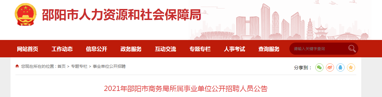 2021湖南省邵陽(yáng)市商務(wù)局所屬事業(yè)單位招聘公告已發(fā)布,報(bào)名時(shí)間:2021年7月5日至7月7日(上午8:00-12:00,下午15:00-18:00)。為您整理了招聘條件和報(bào)名流程,供您參考。