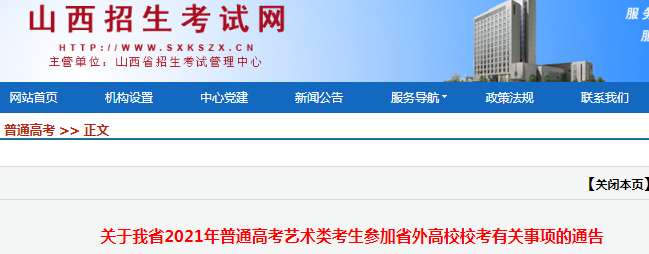 從山西招生考試網(wǎng)了解到,關(guān)于山西省2021年普通高考藝術(shù)類考生參加省外高校??加嘘P(guān)事項(xiàng)的通告已發(fā)布,為方便考生了解情況,現(xiàn)將有關(guān)事宜通知如下: