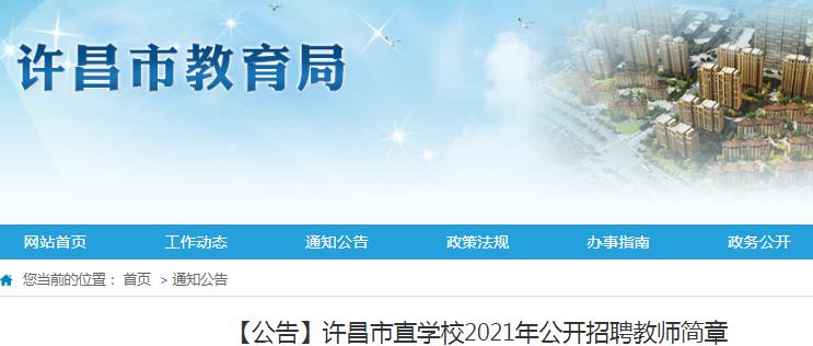 河南許昌市直學(xué)校2021年公開招聘教師簡章已發(fā)布,報名時間為2021年6月24日8:30至6月26日17:30?,F(xiàn)將招聘公告原文發(fā)布如下: