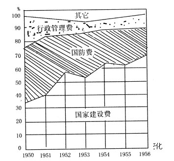 下圖是我國(guó)1950~1956年我國(guó)財(cái)政支出構(gòu)成變化的曲線(xiàn)圖。