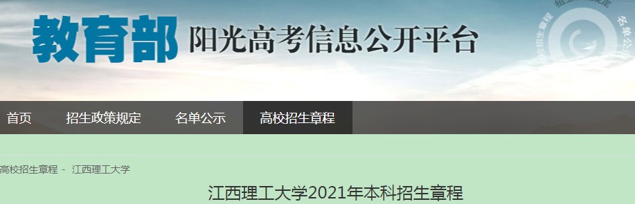 從教育部陽光高考信息公開平臺(tái)獲悉,江西理工大學(xué)2021年本科招生章程已公布,具體詳情如下: