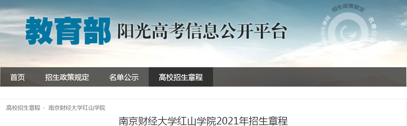 從教育部陽光高考信息公開平臺(tái)獲悉,南京財(cái)經(jīng)大學(xué)紅山學(xué)院2021年招生章程已公布,具體詳情如下: