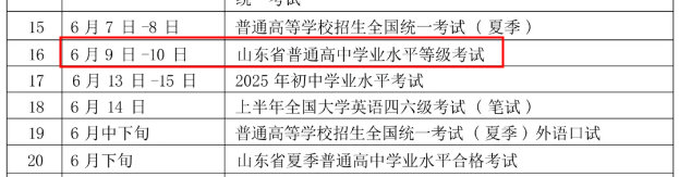 根據(jù)濟(jì)南市教育局公布的《2025年教育考試安排時(shí)間表》了解到,2025年山東聊城普通高中學(xué)業(yè)水平等級(jí)考試時(shí)間已公布,安排在6月9日-10日期間。具體如下: