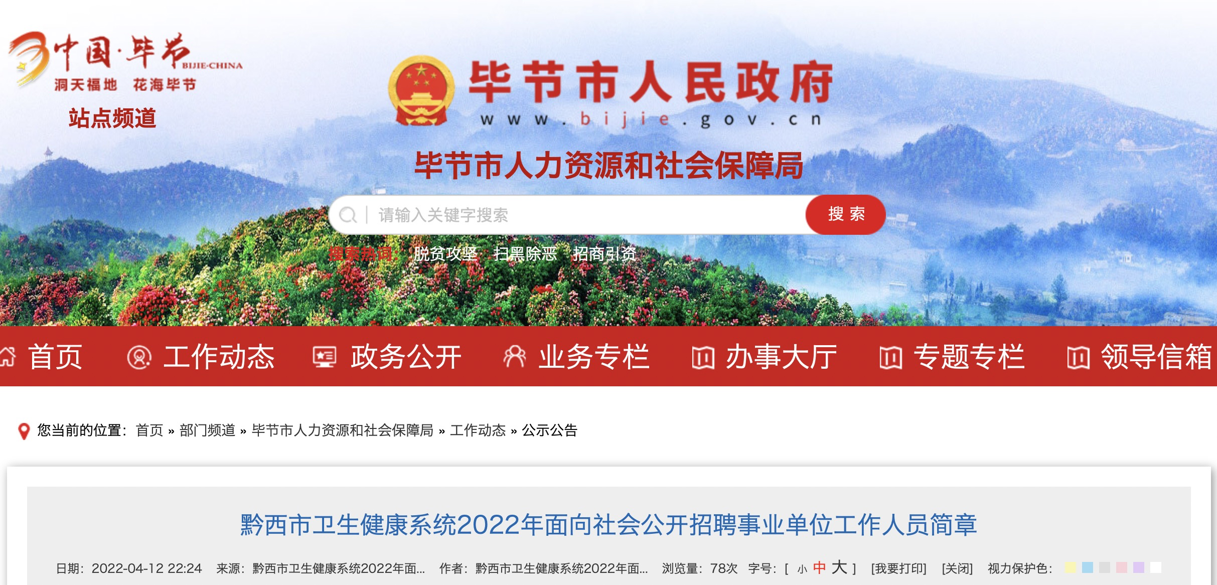 招聘信息于2022年4月12日在黔西市人民政府網(wǎng)或畢節(jié)市人民政府網(wǎng)或畢節(jié)市人力資源和社會(huì)保障局上發(fā)布。