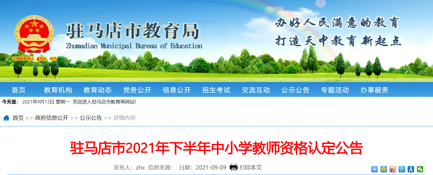 從駐馬店市教育局獲悉,2021年下半年河南駐馬店中小學(xué)教師資格認(rèn)定公告已公布,請(qǐng)相關(guān)人員仔細(xì)閱讀,具體詳情如下: