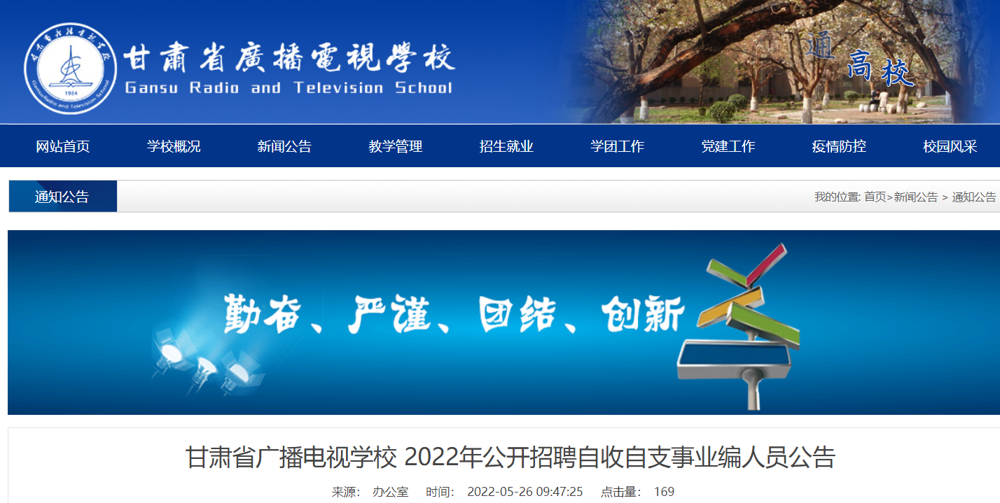 2022年甘肅省廣播電視學(xué)校公開招聘自收自支事業(yè)編人員公告已發(fā)布,報(bào)名時(shí)間:2022年5月26日08:00至6月1日18:00,現(xiàn)將招聘公告原文發(fā)布如下: