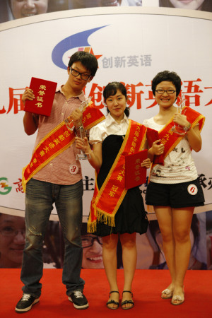 大賽除了產(chǎn)生了冠亞季軍,還產(chǎn)生了第九屆全國(guó)創(chuàng)新英語(yǔ)大賽十強(qiáng)選手,郭一凡、馬暢、張婧瀟、魏令澤、何宇婕、張可一、陳雪蕾、盛沐華、程鈺、徐夢(mèng)迪等10名同學(xué)獲得全國(guó)創(chuàng)新英語(yǔ)大賽“10強(qiáng)選手”稱(chēng)號(hào)。為了表彰考生英語(yǔ)方面的能力,組委會(huì)還單設(shè)了五個(gè)單項(xiàng)獎(jiǎng),郭一凡獲得“佳口才獎(jiǎng)”,朱璇獲得“佳才藝獎(jiǎng)”,陳雪蕾獲得“具創(chuàng)新思維獎(jiǎng)”、盛沐華獲得“受媒體關(guān)注獎(jiǎng)”、徐夢(mèng)迪獲得“佳表現(xiàn)獎(jiǎng)”。