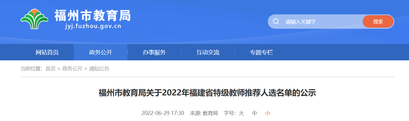 福建省福州市教育局關于2022年福建省特級教師推薦人選名單的公示已發(fā)布。公示日期:2022年6月29日至7月5日。為您整理了以下內容,供您參考。