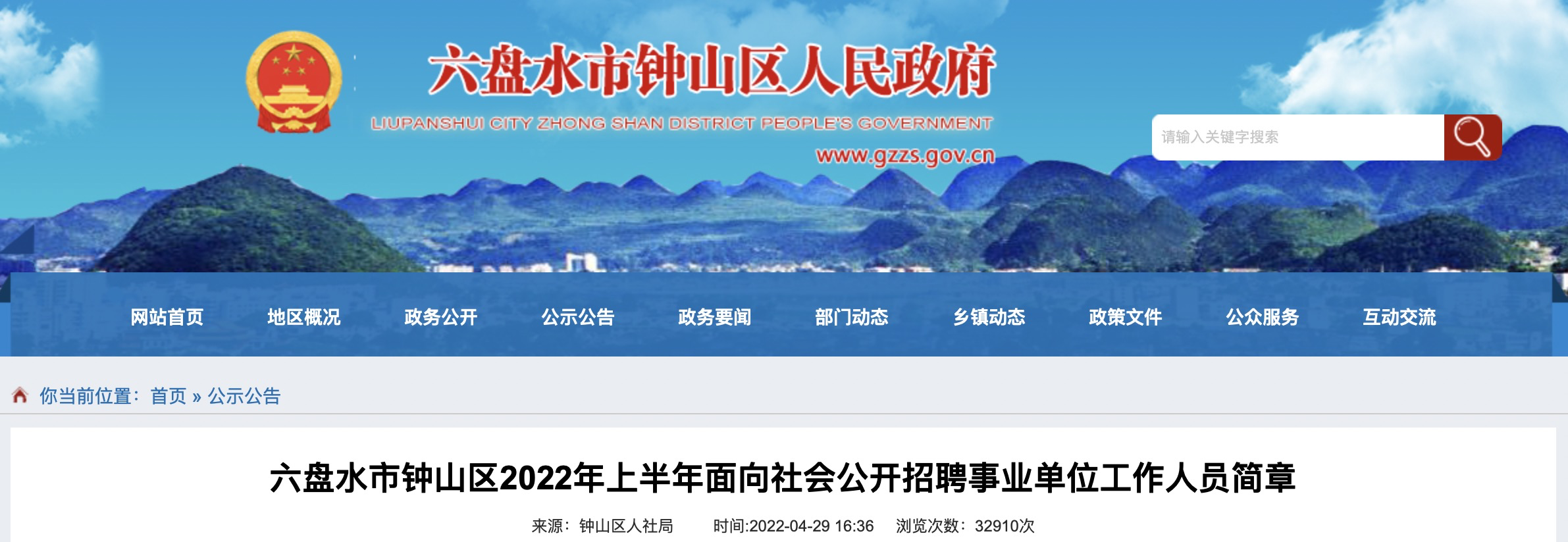 六盤(pán)水市鐘山區(qū)2022年上半年面向社會(huì)公開(kāi)招聘事業(yè)單位工作人員304名,具體招聘職位詳見(jiàn)《六盤(pán)水市鐘山區(qū)2022年上半年面向社會(huì)公開(kāi)招聘事業(yè)單位工作人員職位一覽表》(以下簡(jiǎn)稱《職位一覽表》)。