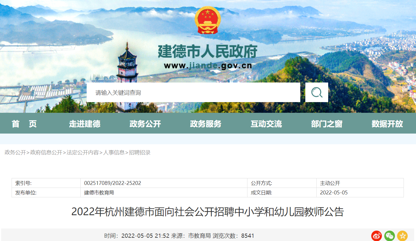 【點擊進入:2022浙江杭州建德市面向社會公開招聘中小學和幼兒園教師報名入口】