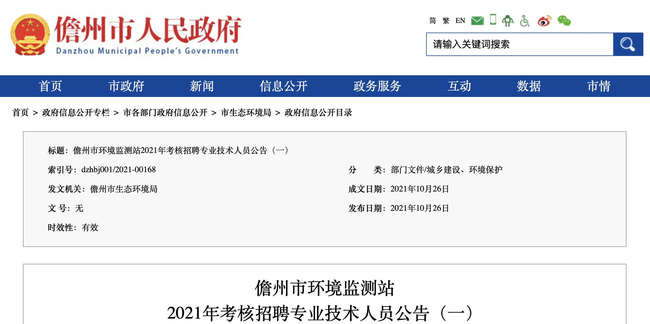 此次招聘所有信息發(fā)布都將通過(guò)儋州市人民政府網(wǎng)通知公告欄和儋州市生態(tài)環(huán)境局政務(wù)公開(kāi)欄發(fā)布,信息發(fā)布時(shí)限為2021年10月27日至11月2日。應(yīng)聘人員應(yīng)及時(shí)登錄網(wǎng)站關(guān)注招聘信息。
