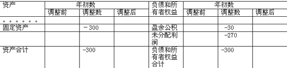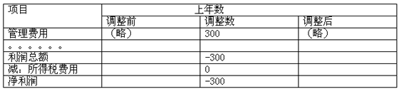對于2008年利潤表,應(yīng)調(diào)增上年度(2007年)管理費(fèi)用3000000元;對于資產(chǎn)負(fù)債表,應(yīng)調(diào)整2008年年報的年初數(shù),調(diào)減固定資產(chǎn)(調(diào)增累計(jì)折舊)3000000元,調(diào)減盈余公積300000元,調(diào)減未分配利潤2700000元(3000000×90%);在所有者權(quán)益變動表中,應(yīng)在本年金額欄中前期差錯更正部分分別調(diào)減盈余公積和未分配利潤300000元和2700000元。見下表: