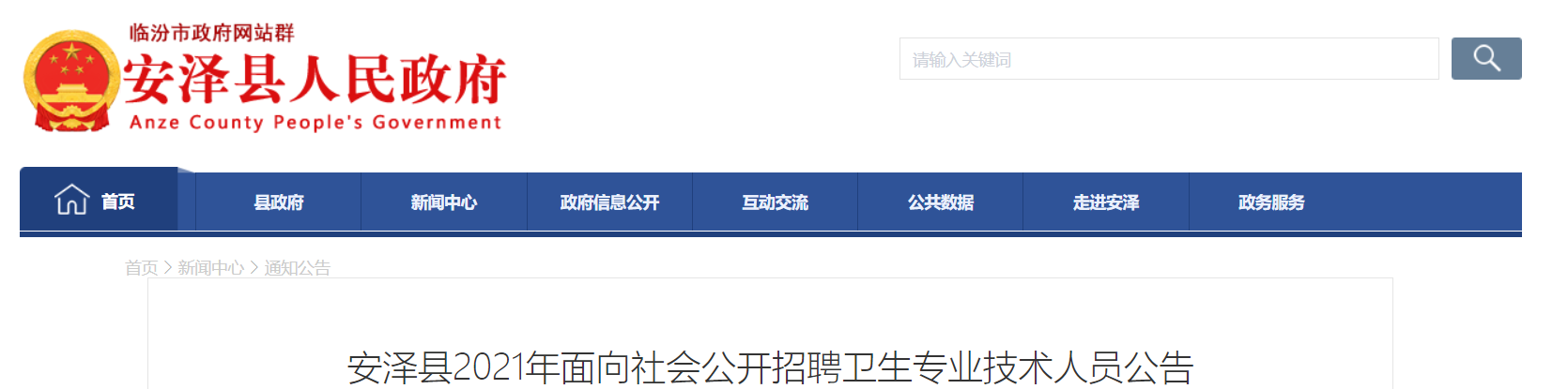 本次招聘的各類信息(筆試、資格復審、面試、體檢時間、地點及筆試、面試成績等)均在安澤縣人民政府網站發(fā)布,不再另行通知。請報名考生密切關注并保持聯(lián)系方式通暢,如因考生自身原因未能及時獲取招聘信息的后果考生自負。