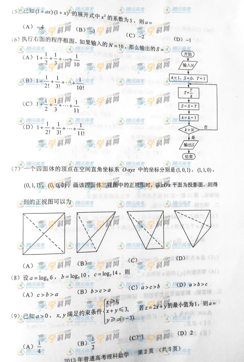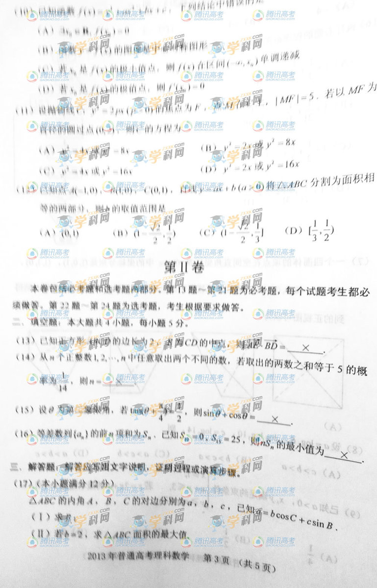 貴州2013高考理數(shù)試卷(圖片版)