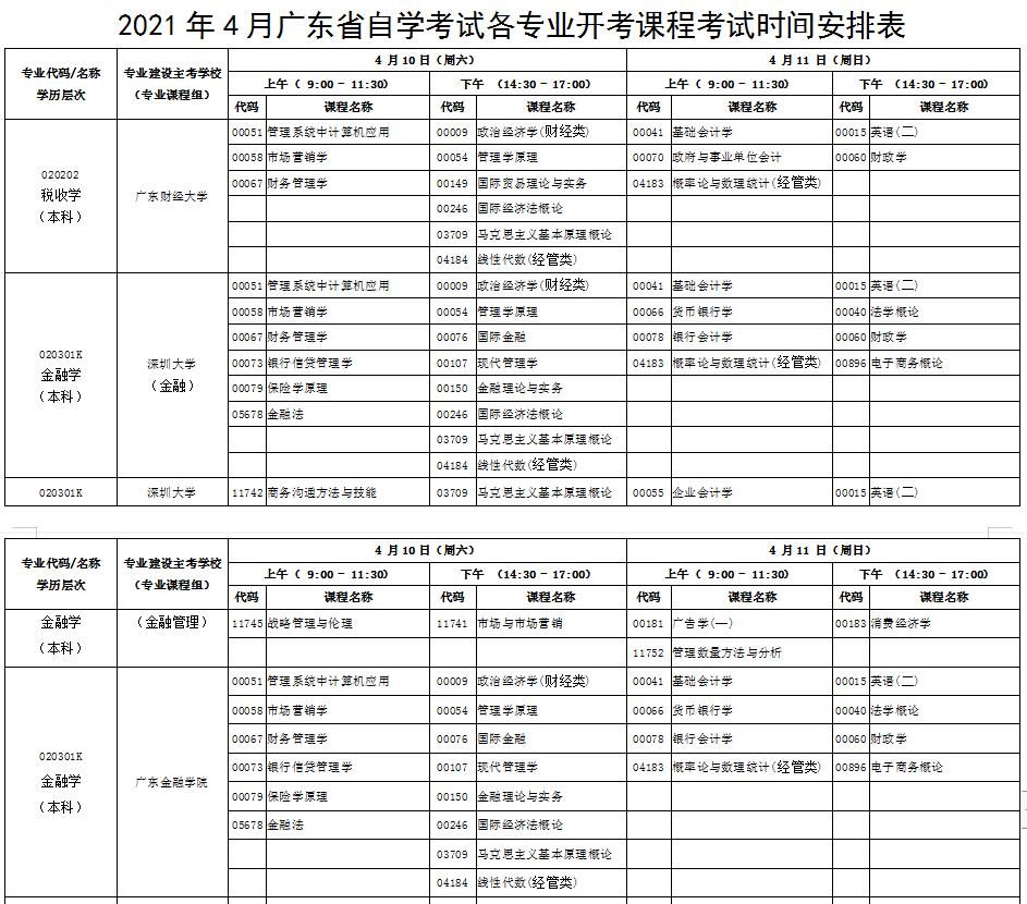 點(diǎn)擊查看完整版>>>2021年4月廣東省自學(xué)考試各專業(yè)開考課程考試時(shí)間安排表