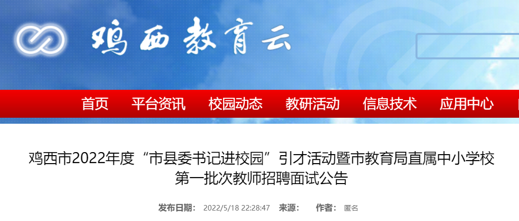 2022年度黑龍江雞西市教育局直屬中小學(xué)校第一批次教師招聘面試公告已發(fā)布,面試時(shí)間:2022年5月26日—5月28日,現(xiàn)將原文發(fā)布如下: