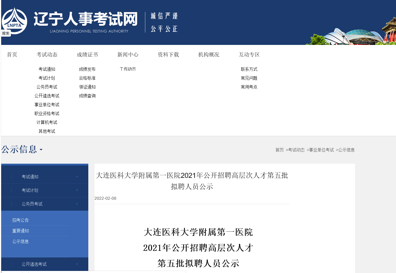 《大連醫(yī)科大學(xué)附屬第一醫(yī)院2021年公開招聘高層次人才擬聘人員公示信息表(第五批)》