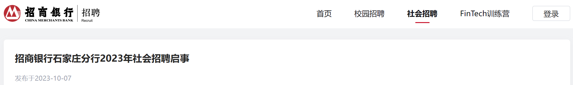 2023年招商銀行河北石家莊分行社會招聘啟事已發(fā)布,現(xiàn)將招聘啟事發(fā)布如下: