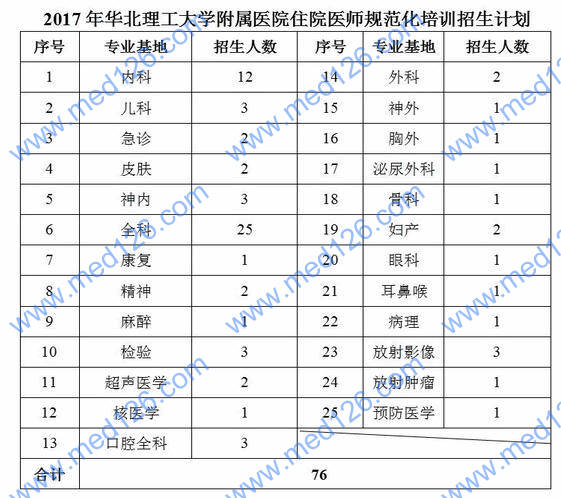 2017年我院擬招錄76名住培醫(yī)師(不含2017年專碩研究生)。優(yōu)先招錄全科、兒科、精神科、婦產(chǎn)科等專業(yè)。具體招生專業(yè)及名額見附件1。