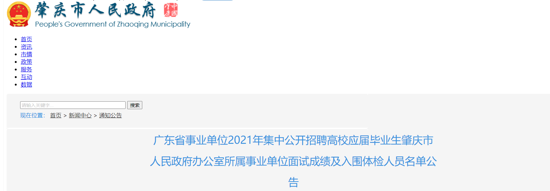附件:1.廣東省事業(yè)單位2020年集中公開招聘高校應(yīng)屆畢業(yè)生肇慶市人民政府辦公室所屬事業(yè)單位面試成績及入圍體檢人員名單