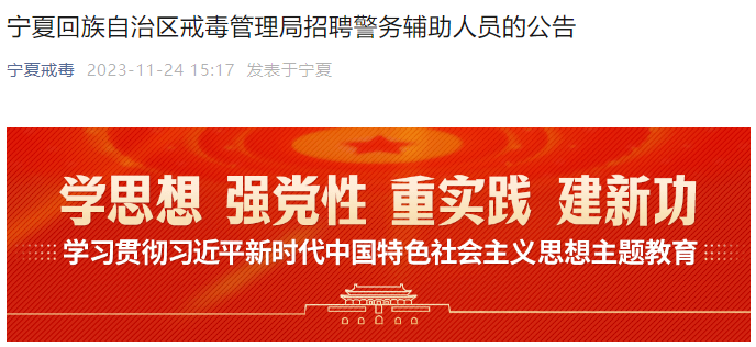 從寧夏戒毒了解到,2023年寧夏回族自治區(qū)戒毒管理局招聘警務(wù)輔助人員7人,相關(guān)事宜詳情如下: