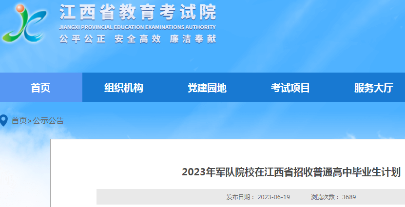 高考頻道從江西省教育考試院了解到,2023年軍隊院校在江西省招收普通高中畢業(yè)生計劃公布。詳情如下: