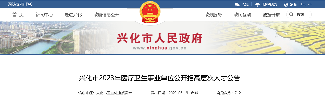 2023江蘇泰州市興化市醫(yī)療衛(wèi)生事業(yè)單位招高層次人才75人,報(bào)名時(shí)間:2023年6月27日09:00-6月29日16:00,現(xiàn)將招聘公告原文發(fā)布如下: