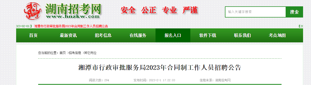 原文標(biāo)題:湘潭市行政審批服務(wù)局2023年合同制工作人員招聘公告