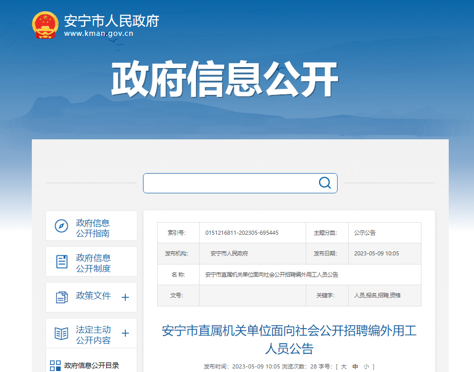原文標(biāo)題:安寧市直屬機(jī)關(guān)單位面向社會(huì)公開(kāi)招聘編外用工人員公告