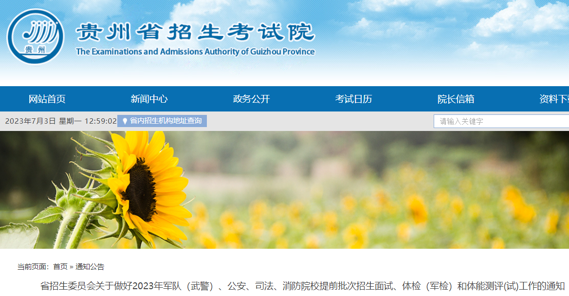 高考頻道從貴州省招生考試院了解到,貴州2023年軍隊(duì)(武警)、公安、司法、消防院校提前批次招生工作的通知已公布,具體如下: