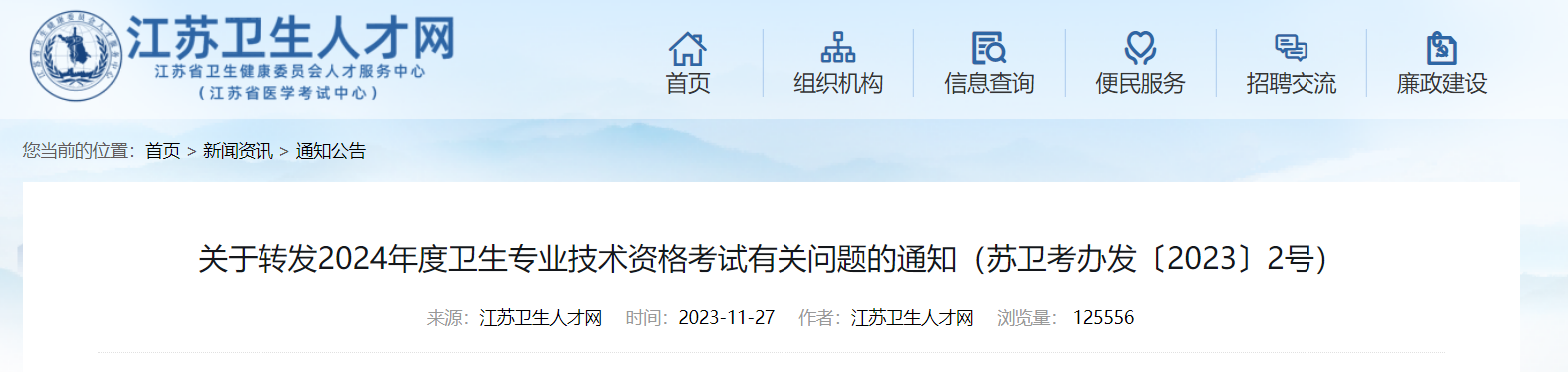 從江蘇衛(wèi)生人才網(wǎng)獲悉,2024年江蘇衛(wèi)生專業(yè)技術(shù)資格考試有關(guān)問(wèn)題的通知已公布,2023年12月1日起報(bào)名,具體詳情如下: