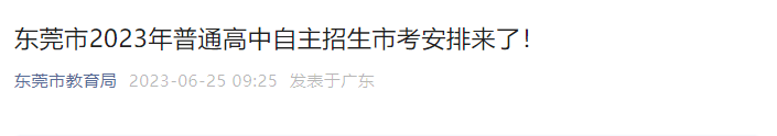 從東莞市教育局公眾號了解到,廣東東莞2023年普通高中自主招生市考安排來了!詳細(xì)內(nèi)容如下: