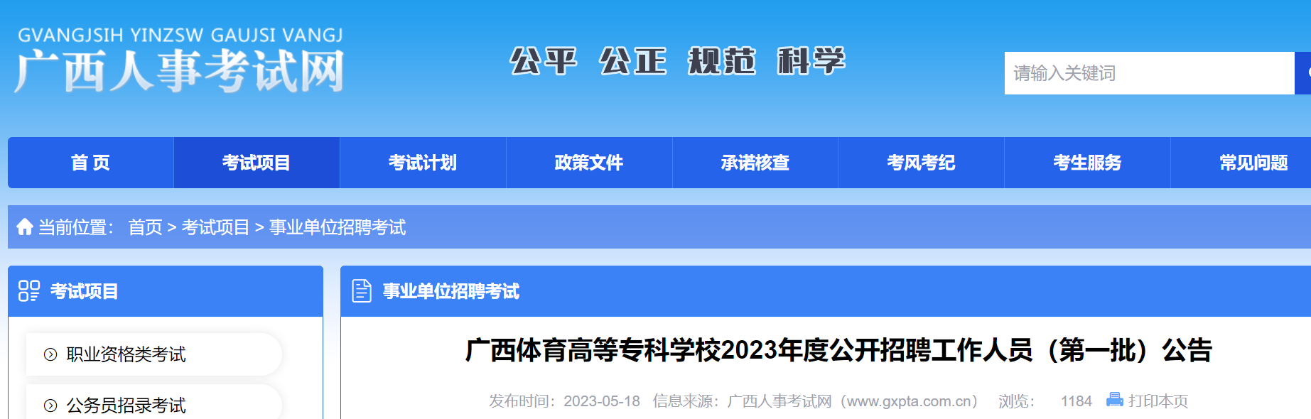 2023年度廣西體育高等??茖W(xué)校第一批公開招聘工作人員85人,報(bào)名時(shí)間:2023年5月18日—6月4日?,F(xiàn)將招聘公告原文發(fā)布如下: