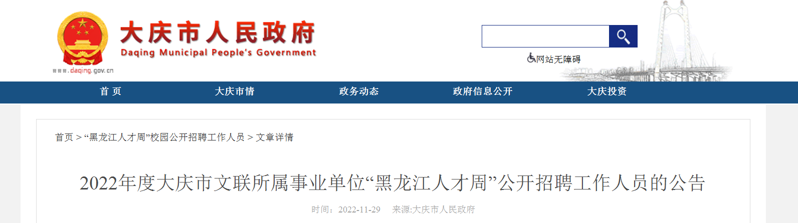 原文標題:2022年度大慶市文聯(lián)所屬事業(yè)單位“黑龍江人才周”公開招聘工作人員的公告