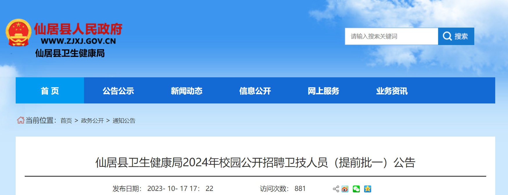 2024浙江臺(tái)州市仙居縣衛(wèi)生健康局校園招聘衛(wèi)技人員16人,預(yù)報(bào)名時(shí)間:自公告發(fā)布之日起至2023年10月30日下午16時(shí)止?,F(xiàn)將招聘公告原文發(fā)布如下: