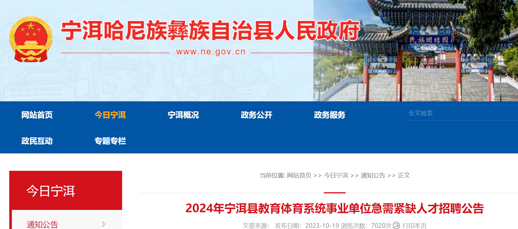 2023年10月19日在寧洱縣人民政府網(wǎng)(http://www.ne.gov.cn/)發(fā)布。