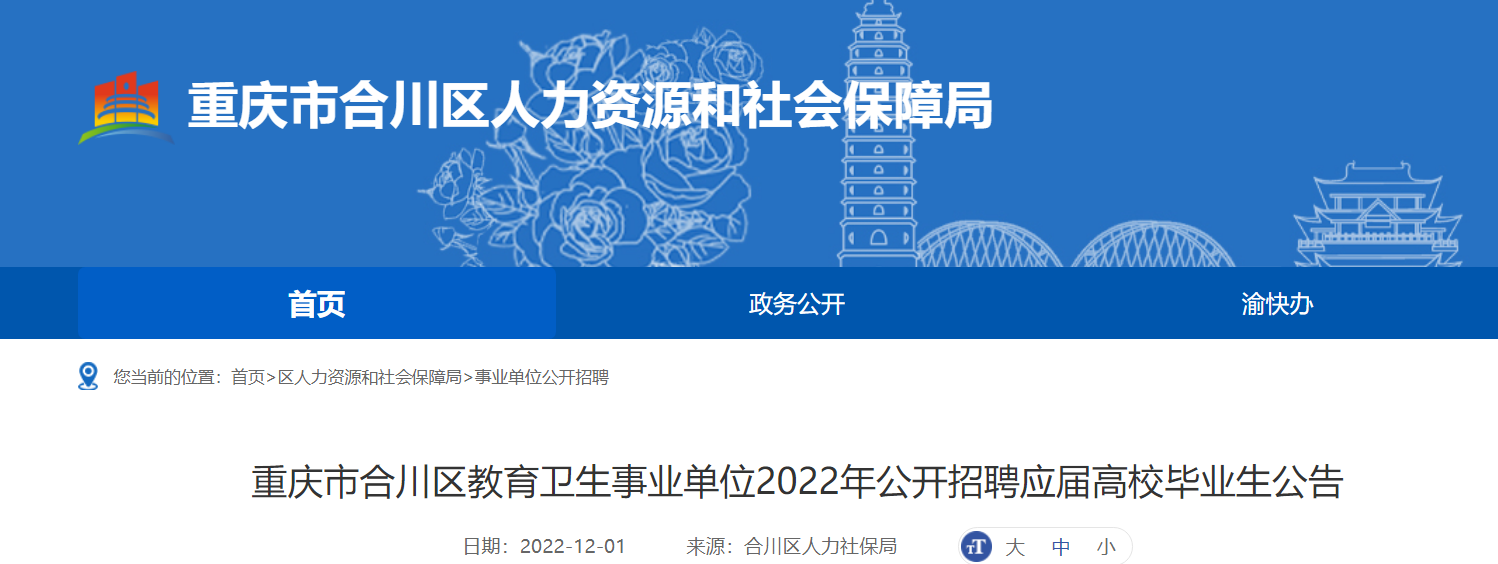 原文標(biāo)題:重慶市合川區(qū)教育衛(wèi)生事業(yè)單位2022年公開招聘應(yīng)屆高校畢業(yè)生公告