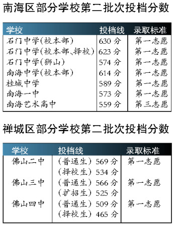 昨天,佛山各區(qū)公布中考第二批次最低控制分數(shù)線,禪城部分學校未招滿,需要降分錄取。