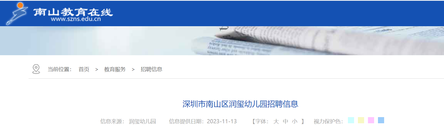 2023年廣東深圳市南山區(qū)潤璽幼兒園招聘信息已發(fā)布,應(yīng)聘者需保證個(gè)人材料、相關(guān)證件等信息的真實(shí)性。現(xiàn)將招聘公告原文發(fā)布如下: