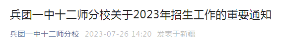 小升初頻道從兵團(tuán)一中十二師分校了解到,新疆烏魯木齊兵團(tuán)一中十二師分校2023年招生工作重要通知已發(fā)布。詳情如下: