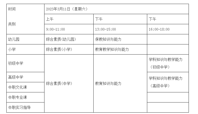 附件:1.2023年上半年中小學(xué)教師資格考試(筆試)科目代碼列表